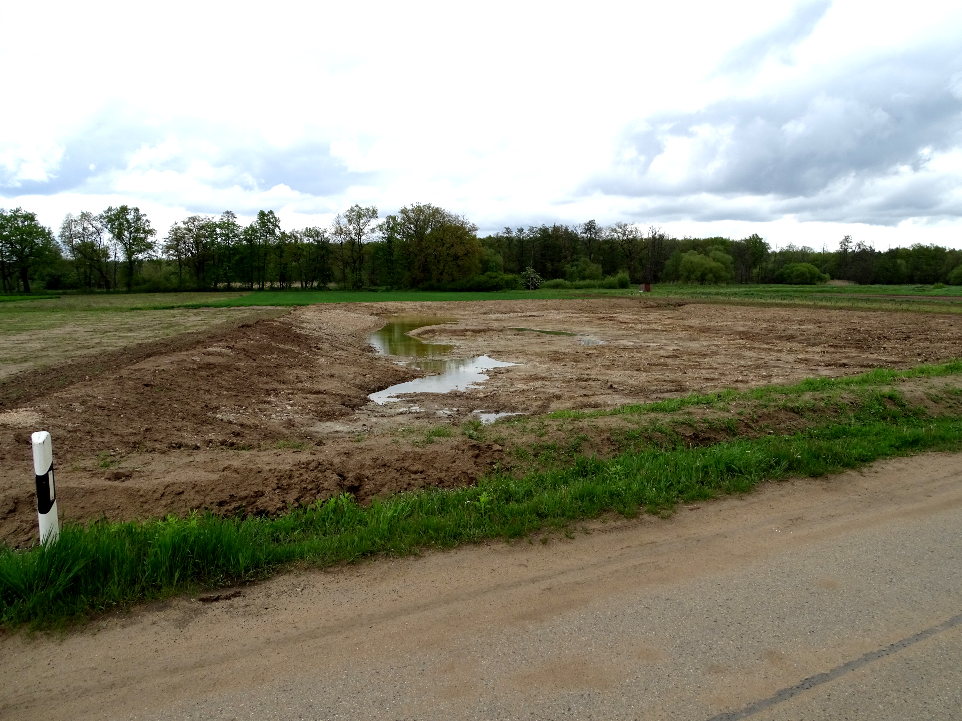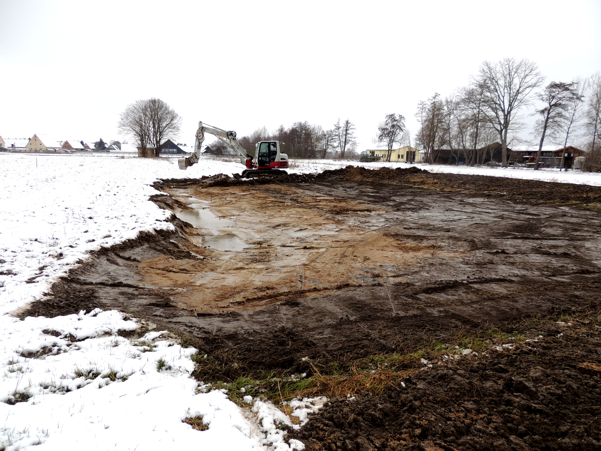 Im Winter 2022 konnte die dritte Seige für den Kiebitzausgleich fertiggestellt werden. Hierfür wurde ein Teil des Bodens abgefahren und der verbleibende Boden für die Modellierung verwendet. Auch diese Seige hat eine Größe von 2500m².